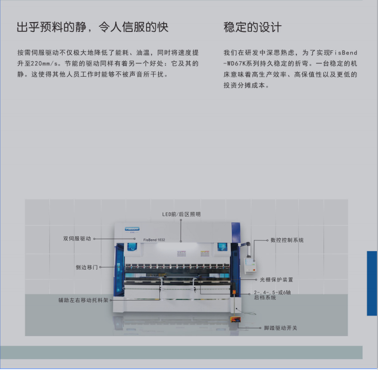 我们在研发中深思熟虑,为了实现FisBend-WD67K系列持久稳定的折弯,一台稳定的机床意味着率,高保值性以及更低的投资分摊成本。