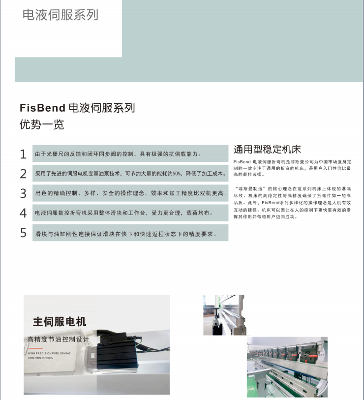 2.采用了先进的伺服电机变量油泵技术,可节约大量的能耗约百分之五十,降低了加工成本。